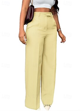 Femmes Jambe large Dress Pants works Streetwear Élégant Longueur complète Naturel Uni Avec Poches Taille Élastique Confortable Bureau Formel Rue Rouge bordeaux Gris foncé Jaune Café Automne Coupe