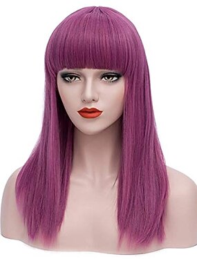 Perruques de cosplay Violet Lisse Cheveux synthétiques Mi-long Perruques Femmes Perruques Pour la fête