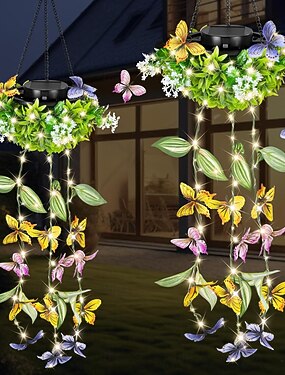 colibri &Carillon lumineux solaire papillon étanche pour extérieur, lot de 2, idéal pour le jardin, la terrasse, le balcon, la cour, la villa, la décoration estivale et les anniversaires. Parfait pour