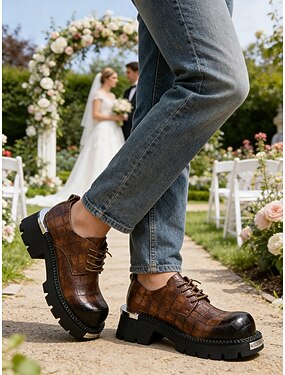 Chaussures à lacets pour homme en similicuir marron avec semelle épaisse, chaussures de mariage décontractées mais élégantes, idéales pour les invités et les mariés.