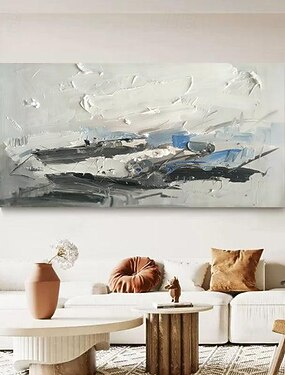 peint à la main surdimensionné gris et blanc peinture à l'huile 3d art abstrait fait à la main art de plâtre 3d peinture à l'huile texturée art mural fait main peinture en plâtre sur toile