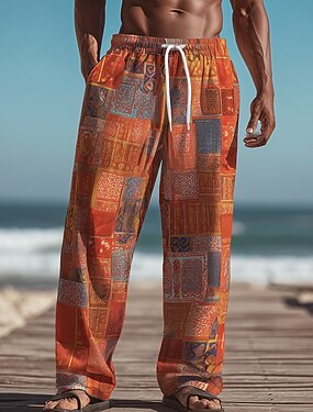 Homme Géométrique Ethnique Pantalons Pantalons Amples Pantalon décontracté Taille Moyenne Boho Vintage Rétro Maison Extérieur Vacances Taille élastique avec cordon de serrage Pantalon en lin avec
