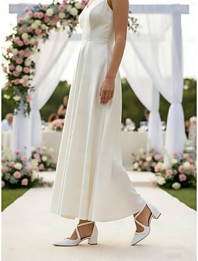Escarpins blancs pour demoiselles d'honneur – chaussures de mariage à bout pointu et petit talon bloc avec bride croisée à la cheville, élégants escarpins pour cortège nuptial