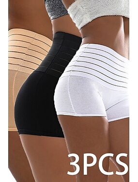Lot de 3 culottes femme taille élastique, vêtements de nuit, en spandex et nylon, idéales pour le yoga, le week-end, coloris unis, gainantes, décontractées/sportives, blanches, noires et beiges, été