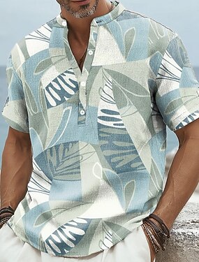 Homme Feuille de palmier Cocotier Plantes Tropicales Chemise Chemise en lin Chemise d'été Manche Courte Hawaïen Vacances Tenue Quotidienne Été Printemps Col mandarin Band Collar Impression 3D Boutons