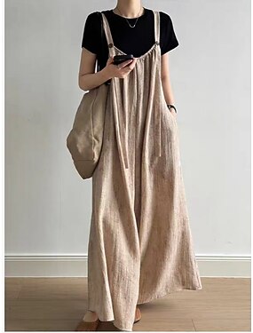 combinaison femme couleur unie col v vacances sorties quotidiennes jambe large coupe ample bretelle spaghetti kaki 3xl été