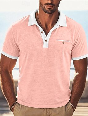 Homme Chemise de golf Polo Piqué Occasionnel Travail Revers Col Polo Côtelé Manche Courte Basique Moderne Bloc de Couleur Patchwork Avec Poches Printemps & Été Été Coupe régulière Rose Claire Vin