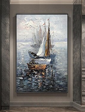 Mintura – peintures à l'huile sur toile de paysage marin de bateau faites à la main, art mural moderne, décoration de salle, image abstraite pour décoration de maison, peinture roulée sans cadre, non