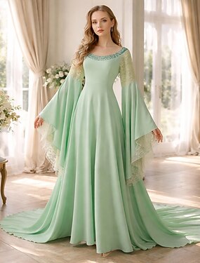 Médiéval Renaissance Chic Longueur au sol Robe Manches longues Princesse Fée Dentelle Couleur Unie Col rond Déguisement Femmes Fantaisie Halloween Carnaval Foire de la Renaissance LARP Adulte Robe
