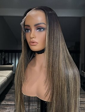 Perruques de cheveux humains brésiliens vierges 100 % non traités, sans colle, avec fermeture en dentelle 5x5, perruque frontale en dentelle 13x4, coupe en couches au milieu, cheveux méchés, perruque