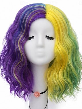 Perruque de carnaval violet vert jaune bouclée courte synthétique perruque de festival Mardi Gras parade costume de cosplay cheveux pour femmes