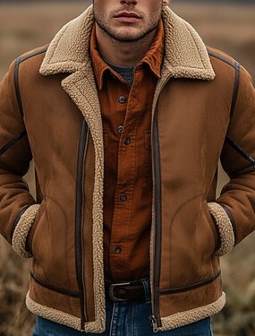 Homme Veste en faux suède Veste en Polaire Veste Sherpa Veste en Daim Marron Occasionnel Décontracté Quotidien Coupe-Vent Patchwork Avec Poches Hiver Couleur Unie ancien Mode Col de chemise Régulier