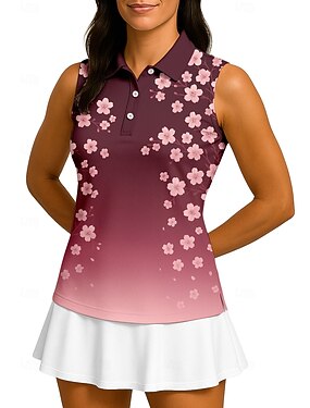 Femmes Floral T-shirt de sport T-shirt POLO Chemise de tennis Sans manches Fermeture éclair Floral UPF50+ Résistant aux UV Haute élasticité Évacuation de l'Humidité Respirant Tennis Le golf Pickleball