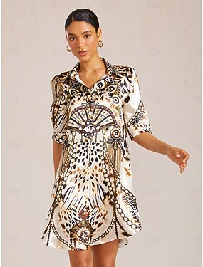 Robe chemise droite en satin soyeux ornée de bijoux léopard vintage