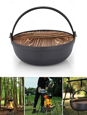 Marmites en fonte avec couvercle en bois, marmites suspendues pour la cuisson, marmites de camping, accessoires de cuisine pour l'extérieur