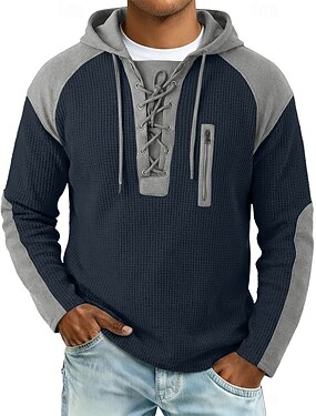 Homme Tee-shirt Gaufre T-shirt T-shirt Henley gaufré manche longue À capuche Col à lacets Automne Automne & Hiver Couleur Unie Texturé Traditionnel / Vintage Occasionnel Cordon de serrage Occasionnel