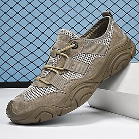 Baskets de sport kaki respirantes en maille et daim pour hommes – chaussures décontractées et robustes pour les activités de plein air et le streetwear