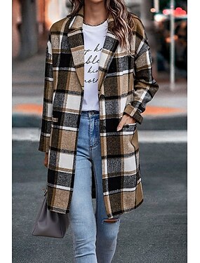 Femmes Manteau d'Hiver Veste d'hiver Confortable Respirant Avec Poches Imprimé Occasionnel Plaid Vacances Rue Occasionnel Tenue quotidienne Simple Boutonnage Long Col Rabattu Coupe régulière manche