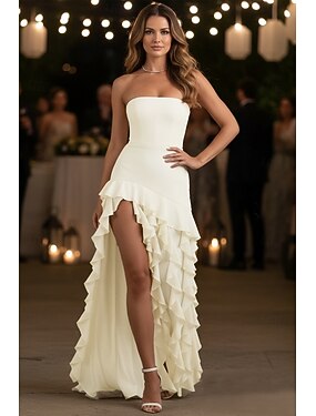 Fourreau Colonne Longueur au sol Robe Blanche petite robe blanche Élégant Dos Nu Sans manches Sans bretelles Soirée Mariage Chiffon Dos nu avec Volants Fente