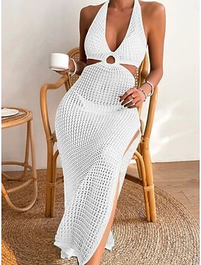 Couverture de maillot de bain femme robe sexy avec découpes crochet élégant vacances couleur unie col halter sans manches