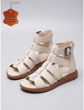 Sandales gladiateur beiges pour femmes – sandales décontractées élégantes en cuir à plusieurs brides, chaussures de marche décontractées pour les voyages et les tenues d'été &vêtements de tous les