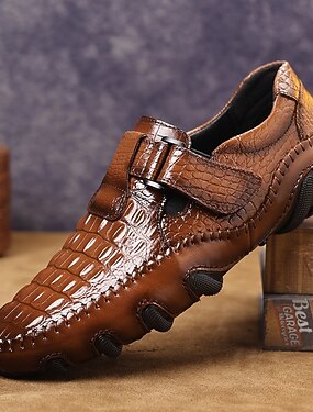 Mocassins confortables à boucle, marron, style croco, pour homme. Chaussures décontractées et élégantes, faciles à enfiler, parfaites au quotidien, pour les occasions formelles, les voyages, le bureau, les soirées et un look chic décontracté.