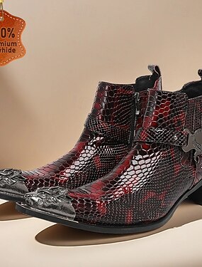 Bottes à harnais en cuir véritable rouge pour hommes avec bout en métal et fermeture éclair, bottines western 100 % cuir de vache pour fêtes, spectacles et mode discothèque