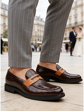 Mocassins marron pour homme à imprimé crocodile – chaussures élégantes à enfiler au design tendance, idéales pour le bureau, les occasions formelles, les sorties décontractées et les mariages.
