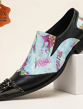 Mocassins pour homme à imprimé multicolore, bout pointu et embout métallique, chaussures habillées à enfiler, idéales pour les mariages, banquets, soirées, bals de fin d'année, défilés de mode, boîtes de nuit et pour une allure élégante et sophistiquée en
