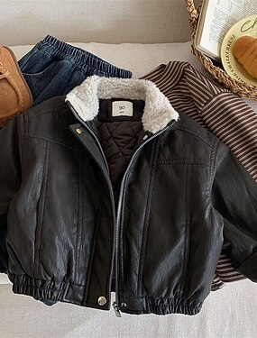 Veste en faux daim Veste polaire Veste Vêtements d'extérieur Enfant Garçons Uni manche longue Zip Up Manteau Quotidien Mode Occasionnel Chameau Marron Automne Hiver 4-12 ans