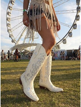 bottes de cowboy western vintage ornées de strass pour femmes, design en cuir brodé pour les mariages et les occasions spéciales