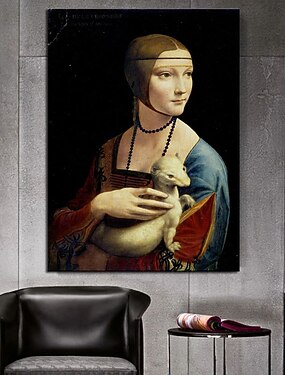 fait à la main peint à la main peinture à l'huile la dame avec un chat art mural abstrait célèbre leonardo da vinci sculpture décoration de la maison décor toile roulée pas de cadre non tendu