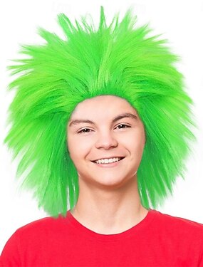 Perruques Vertes Perruque Synthétique Droite Coupe de Cheveux en Couches Asymétrique Perruque Fabrication Machine Courte Cheveux Synthétiques Verts Hommes Fête Naturelle Verte