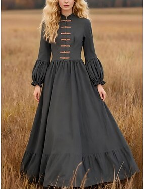 Femmes Robe maxi Robe trapèze Occasionnel Quotidien Coupe régulière Uni manche longue Col haut Gris Été Automne