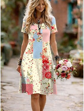 Femmes Robe Midi Robe fourreau Robe T-Shirt Occasionnel Quotidien Coupe régulière Fleuri Graphique Manche Courte Col ras du cou Bleu Rose Claire Violet Été Printemps