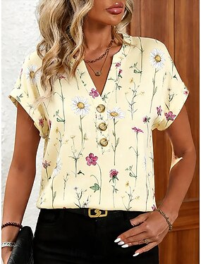 Femmes T-shirt Imprimé Fleuri Graphique Plantes ancien Élégant Occasionnel Manche Courte Encolure en V Hauts Réguliers Quotidien Sortir Week-end Bleu Jaune Rose Claire Violet Été Printemps