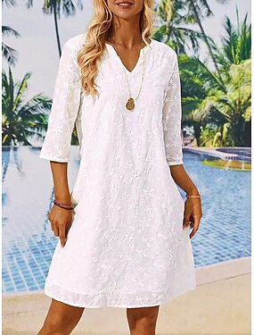 Femmes Robe Longueur Genou Robe en Dentelle Robe Blanche Élégant Mode Plage Vacances Fête Coupe régulière Fleuri Demi Manches Col en V Blanche Été Printemps