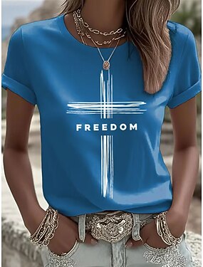 T-shirt féminin patriote pour le jour de l'indépendance - graphique - lettre - vintage - élégant - classique - à manches courtes - col rond - hauts réguliers - impression quotidienne de week-end -