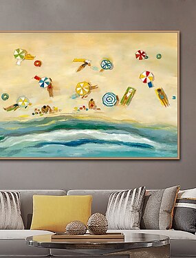 Mintura main plage paysage peintures à l'huile sur toile mur art décoration moderne abstrait image pour la décoration intérieure roulé sans cadre non étiré peinture