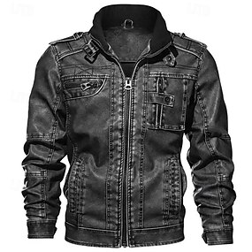 Homme Veste en Similicuir Veste Cargo Veste Décontractée Blouson de Moto Vacances Quotidien Chaud Avec Poches Hiver Uni Mode Classique Col montant Régulier Noir Marron Kaki Veste