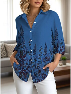 Femmes Chemise Boutons Imprimé Fleuri Élégant Quotidien Moderne manche longue Col de chemise Hauts Réguliers Quotidien Fête Bleu Rouge Printemps Automne