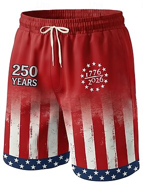 Homme 4 juillet, 250e anniversaire des États-Unis Drapeau américain 1776 Maillots de bain Shorts de bain Shorts de Surf Taille Moyenne Patriotique Fête Poches Latérales doublure en maille Taille