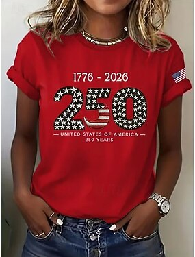 Jour de l'Indépendance Américaine Femmes T-shirt Imprimé Graphique Drapeau Lettre ancien Élégant Classique Manche Courte Col ras du cou Hauts Réguliers Quotidien Bleu Noir Blanche Rouge Été Printemps