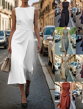 Femmes Robe Midi Robe Blanche Robe de Soirée Robe de Cocktail Robe trapèze Élégant Mode Moderne Bureau Soirée Cocktail Coupe régulière Uni Sans manches Col en V Noir Blanche Rouge bleu marine Ét