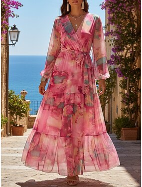 Robe d'invitée de mariage longueur sol robes habillées formelles robe évasée robe de la mère de la mariée à manches longues décolleté en V élégant vintage grande taille avec plis en dentelle