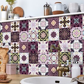 24 pièces créatif cuisine salle de bain salon autocollants muraux autocollants imperméables méditerranéen fuchsia carrelage autocollants