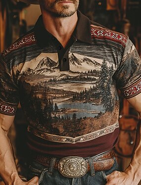Homme Arbre Montagne Polo Manche Courte Polos Chemises à Col Style Western Extérieur Athleisure Tenue quotidienne Impression 3D Été Marron