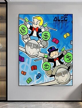 art mural de motivation peint à la main art monopole homme qui pleut de l'argent toile inspirante peinture murale fantaisie pour salon bar décoration autocollants peinture murale prête à accrocher ou