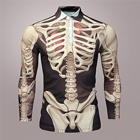 Polos à manches longues pour hommes squelettes abstraits décontractés quotidien streetwear impression 3D automne et hiver noir rouge kaki