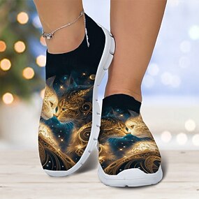 Baskets Flyknit à imprimé chat pour femmes avec un design léger - chaussures décontractées élégantes pour un usage quotidien et des activités de plein air
